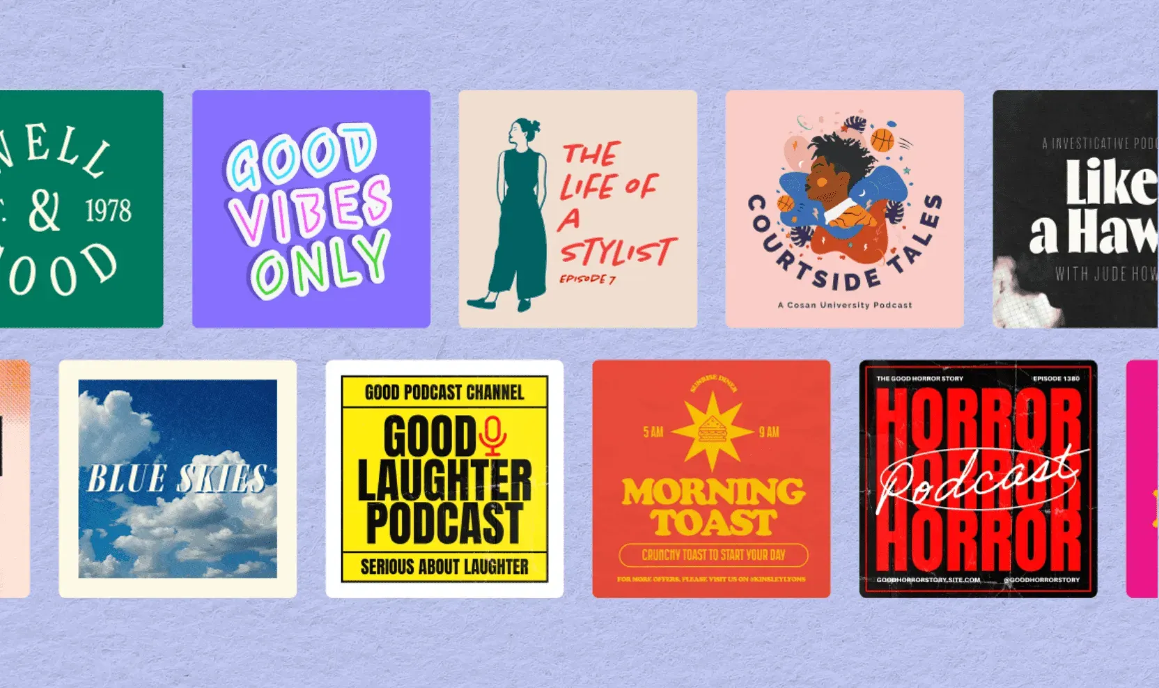 Visual designs are an essential element in creating a successful podcast. Your visual designs offer a first impression of your podcast and help create interest. Adobe Express makes the creation process easy, allowing you to quickly create eye-catching cover art for your podcast channel, as well as unique thumbnails for each episode.