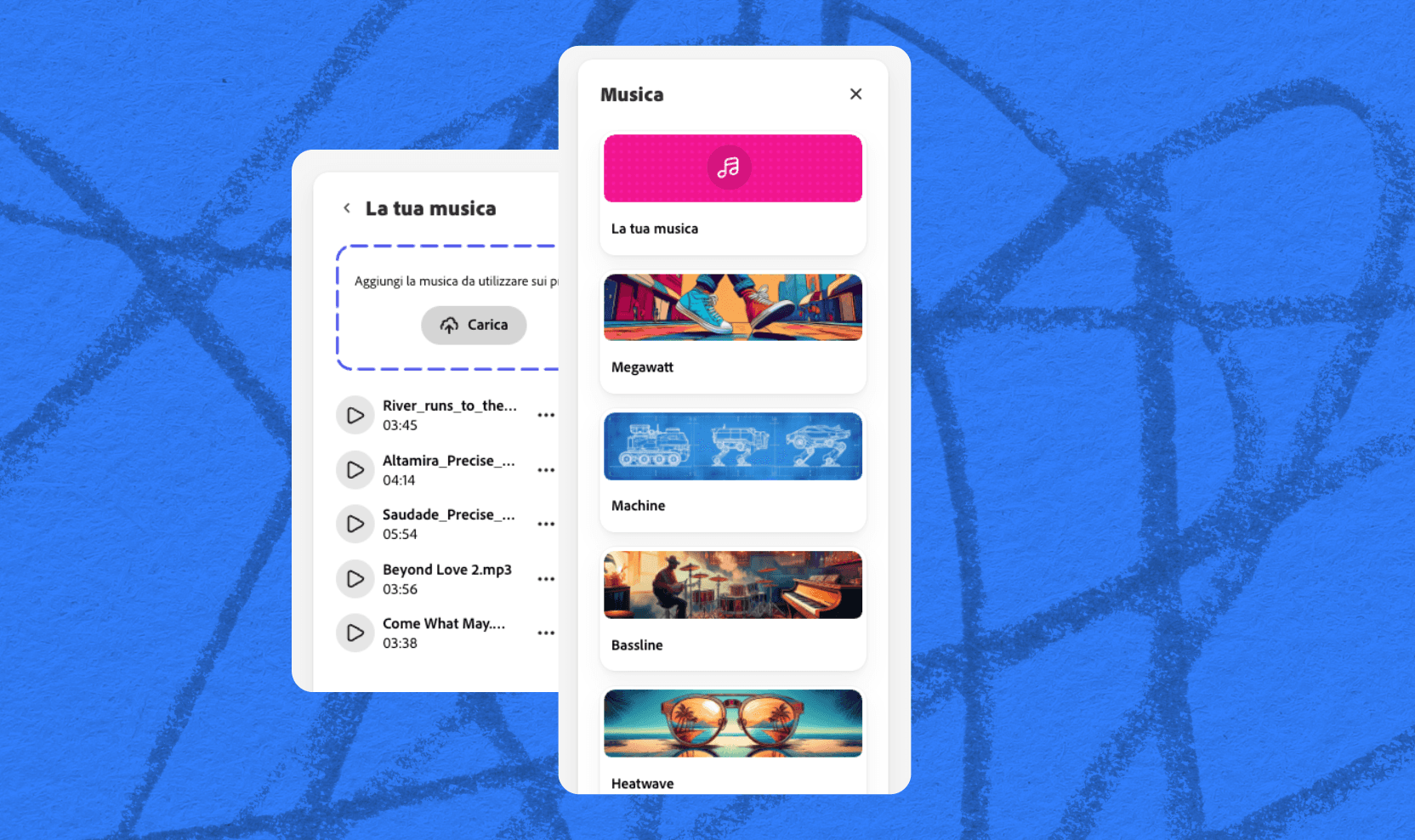 Questa guida ti guiderà attraverso il processo di aggiunta di musica personalizzata e utilizzo di tracce dalla nostra libreria di collezioni musicali.